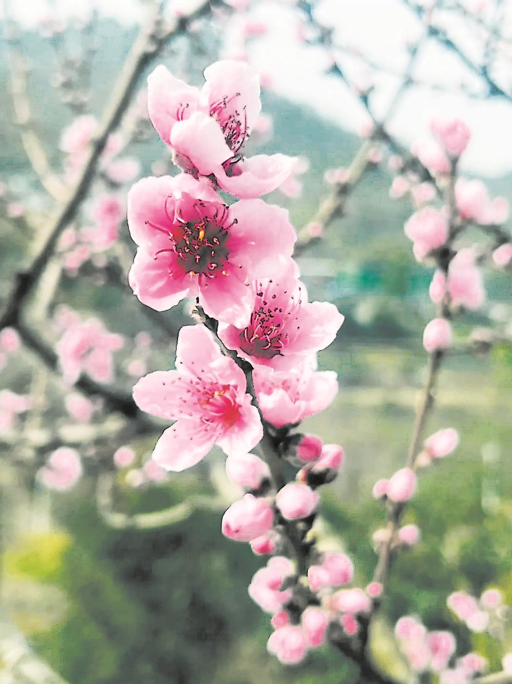 记者沿着318国道往山泉镇方向上山,在山泉镇加油站附近看到伫立在公路旁的几株桃树已开出数枝桃花,粉色的花朵缀满枝头,为春天增添了一抹鲜活的色彩。朵朵桃花张开花瓣,露出淡粉色的花蕊,显得格外鲜艳娇美。不过按照往年情况,龙泉山桃花一般3月才正式进入盛花期。