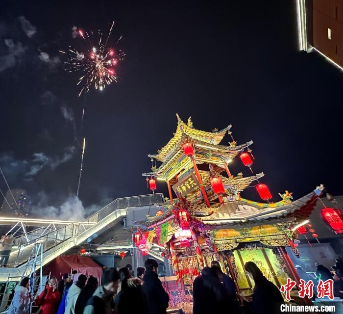 据了解,“盘子”是一种制作精美的组合型阁楼式仿古建筑模型,它一般高3米到4米,有四角或六角,有单层或双层,内分几个神龛,供奉天官、财神、观音等神像,因其具有独特的祭祀功能,被视为“浓缩的庙宇、放大的神龛”。