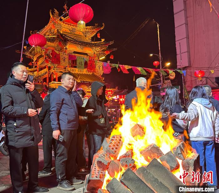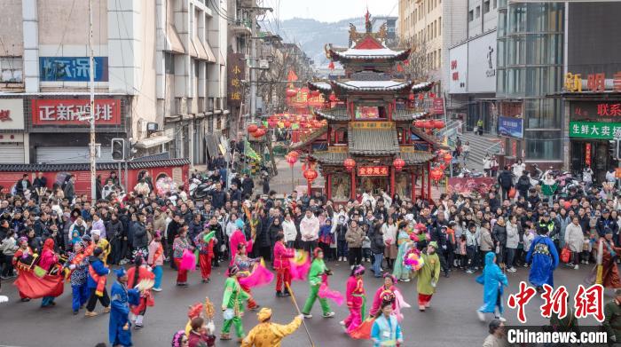 “柳林盘子会”举办期间,该县各街巷张灯结彩、高搭彩盘、遍点社火,或配以秧歌、弹唱,或佐以转九曲、斗活龙,人们汇聚在一起共庆佳节。王凤云摄
