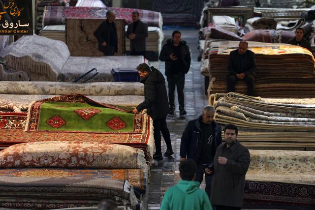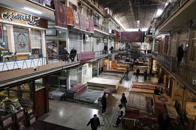 2月24日,人们在伊朗首都德黑兰大巴扎选购地毯。新华社/法新