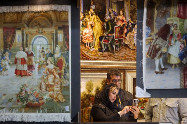 2月24日,顾客在伊朗首都德黑兰大巴扎选购挂毯。新华社/法新