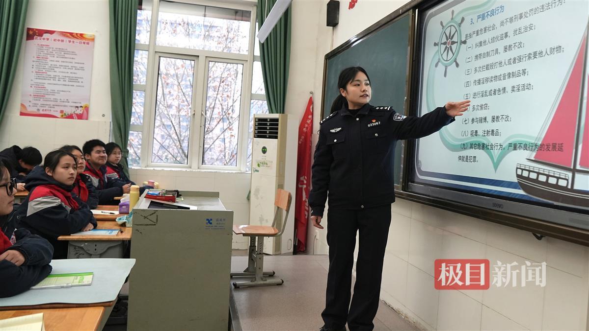 武汉初级中学,女民警为同学们上了开学第一堂法治宣讲课