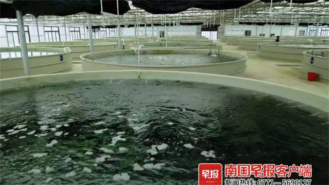 设施渔业养殖展示区里,28个超大的圆形钢化玻璃池盛着大王滩水库运来的干净清洁水库水,在打氧机的持续工作下,鱼群能一直”蹦蹦蹦”地健康生长着。