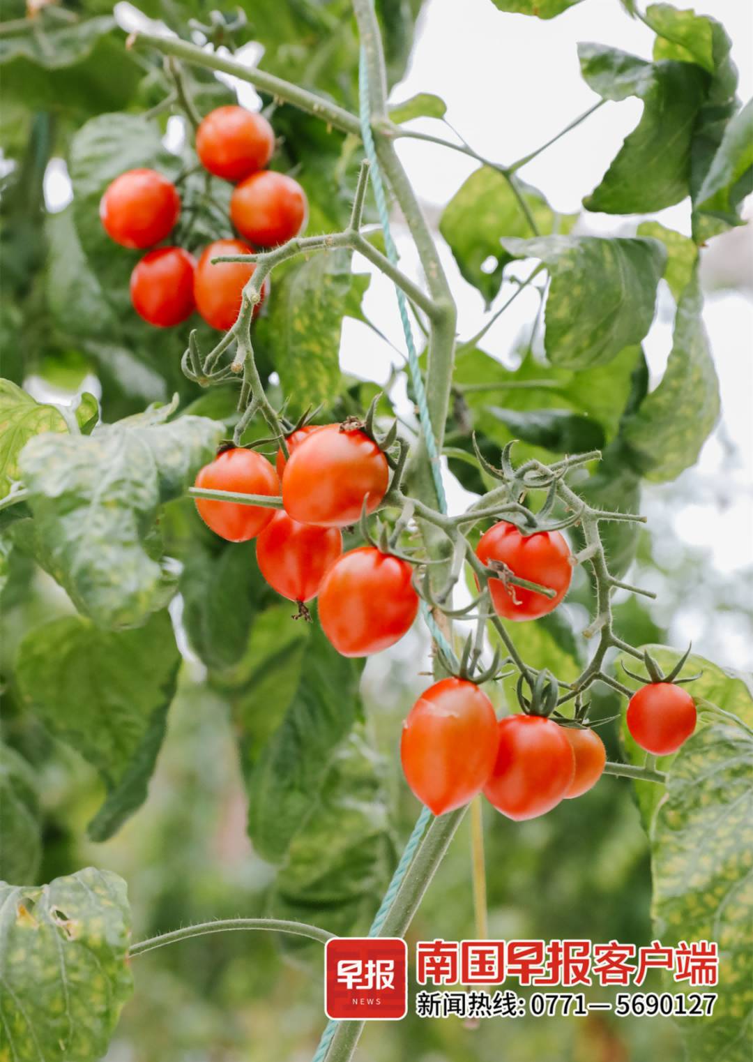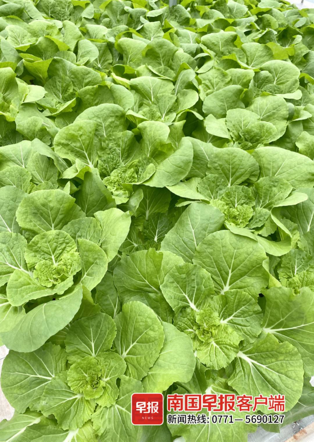 在温室里,一排排无限生长型的小番茄已经果实累累,新鲜饱满,红黄翠绿,煞是好看;循环水栽培的快菜已经绿油油一大片,从育苗到成熟也就1个多月时间,已经可以丰收采摘。