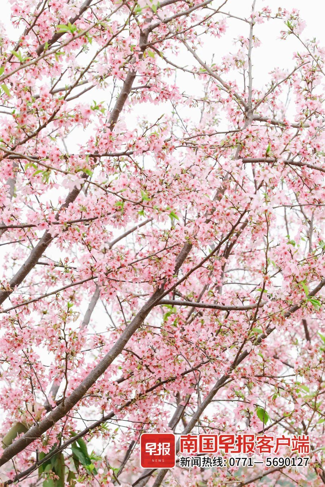 这里是南宁市吴圩镇明阳工业区明阳农业科技园内的广西农垦明阳百亩樱花园!在春日暖阳的照耀下,广西农垦明阳百亩樱花园首次成片开花,仿佛一夜之间就全然盛放,满山烂漫,如云似霞。