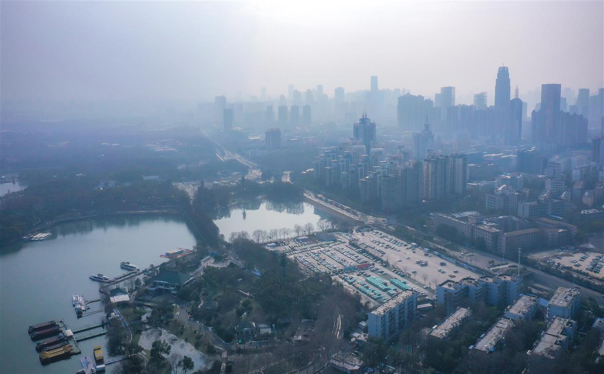 2月27日,艳阳高照下,暖融融的太阳将冰雪一点点融化,使武汉城区洋溢出春天的气息。