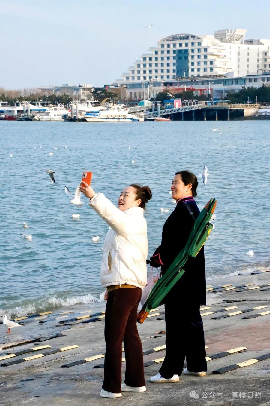 越来越多的海鸥也爱上了日照的海