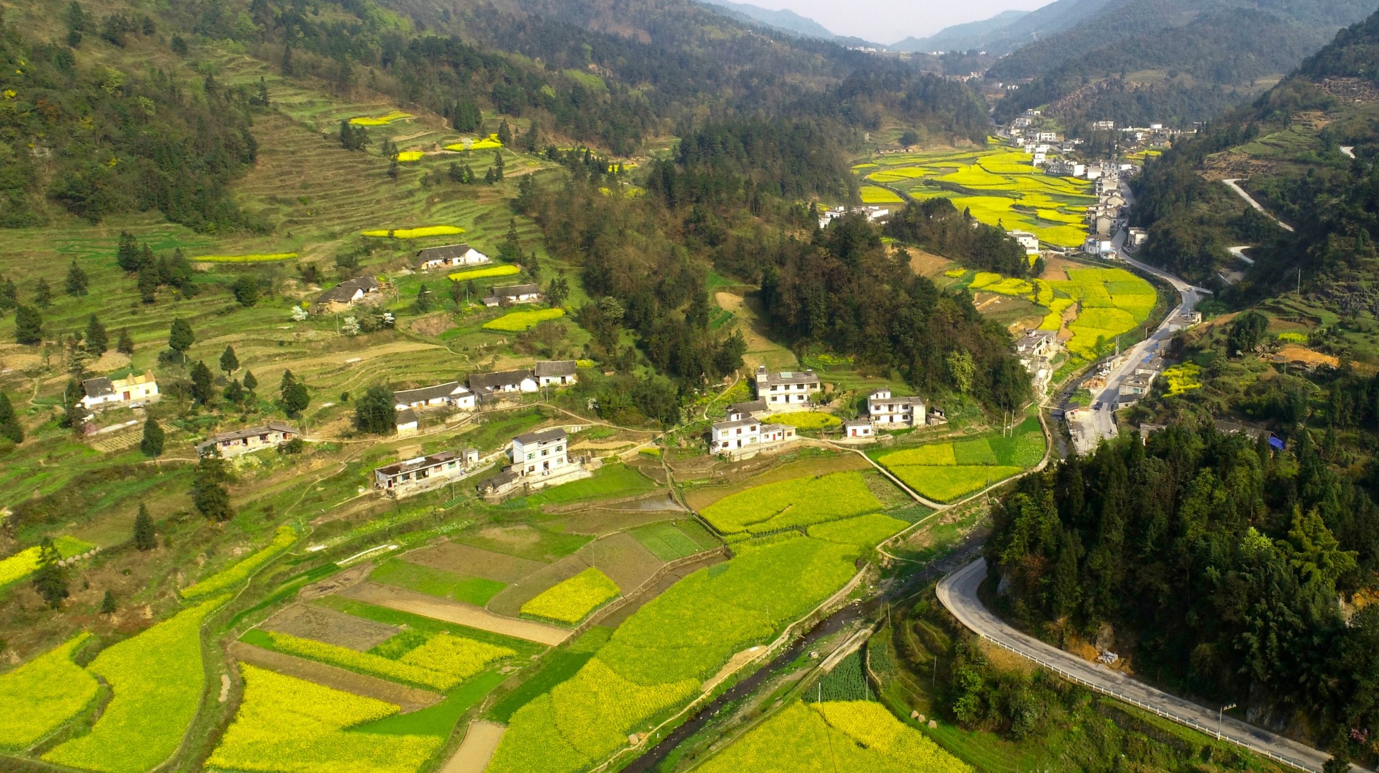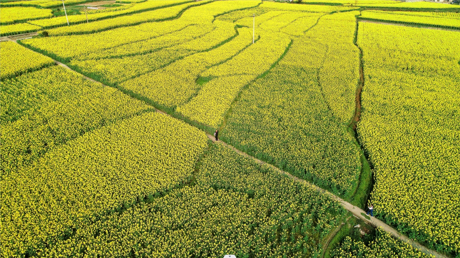 油菜花海与翠绿群山交相辉映(廖文双 摄)