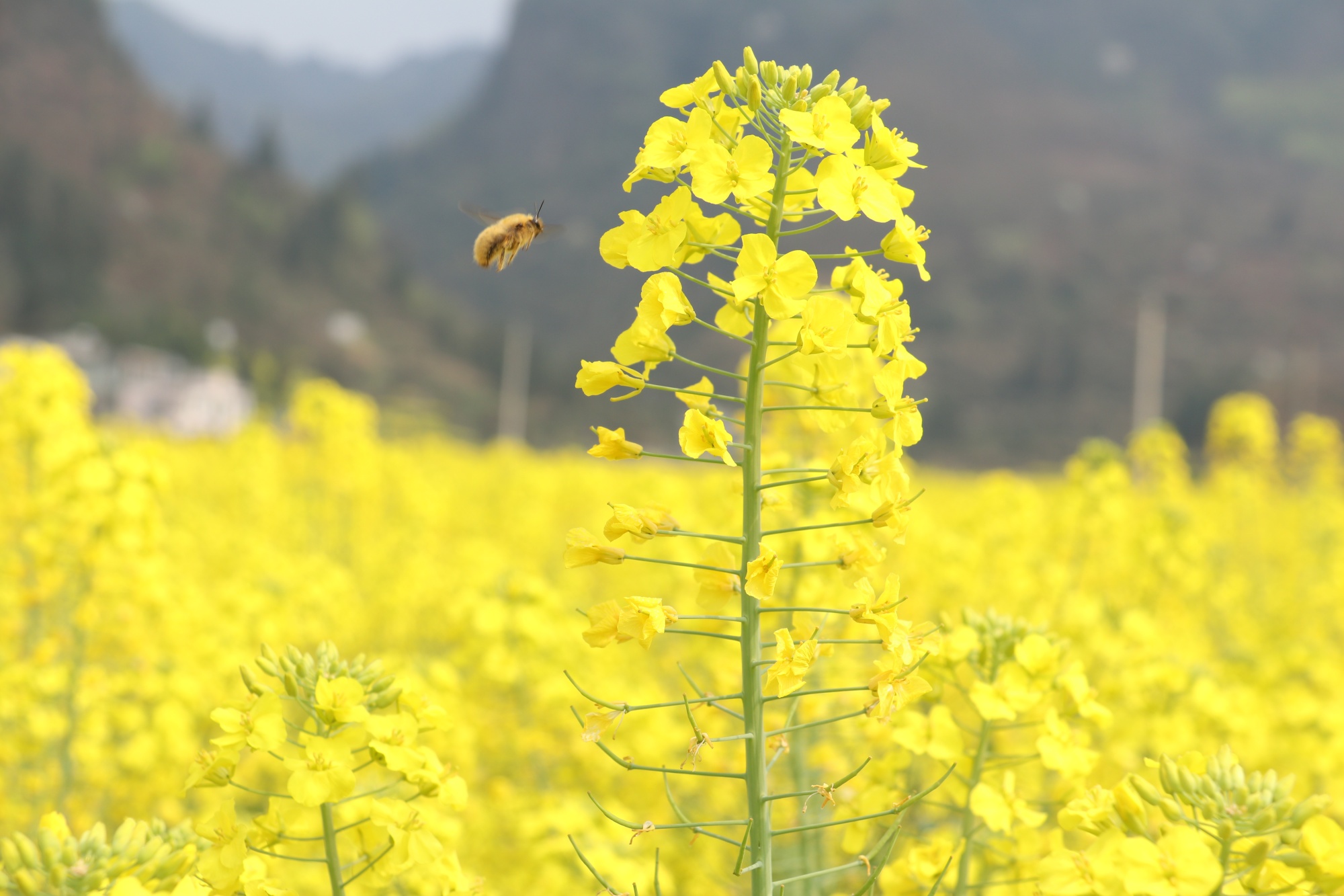 油菜花怒放,引来蜜蜂萦绕(廖文双 摄)