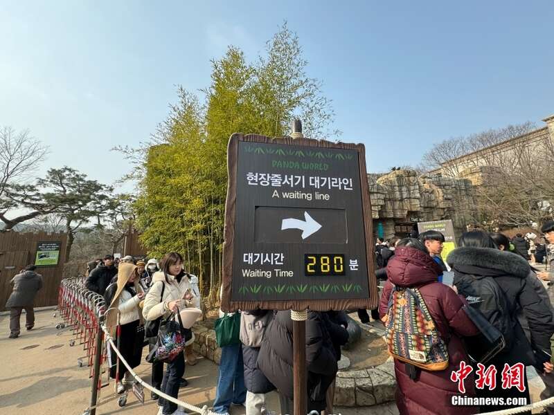 当地时间3月3日,游客排队进入韩国三星爱宝乐园熊猫世界。据悉,旅韩大熊猫“福宝”计划在4月初回国,当天是“福宝”与公众见面的最后一天。