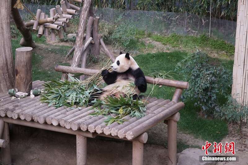 当地时间3月3日,旅韩大熊猫“福宝”在韩国三星爱宝乐园熊猫世界内吃竹子。据悉,“福宝”计划在4月初回国,当天是“福宝”与公众见面的最后一天。