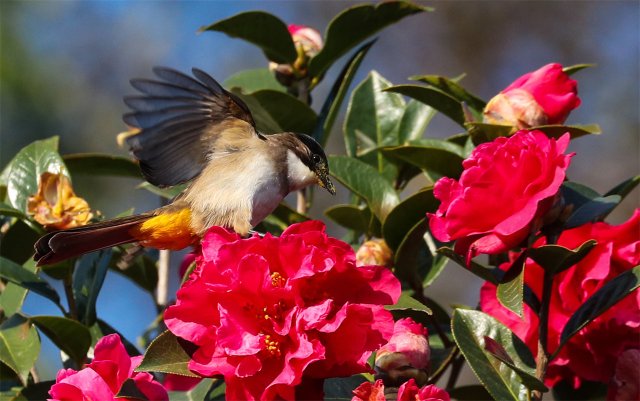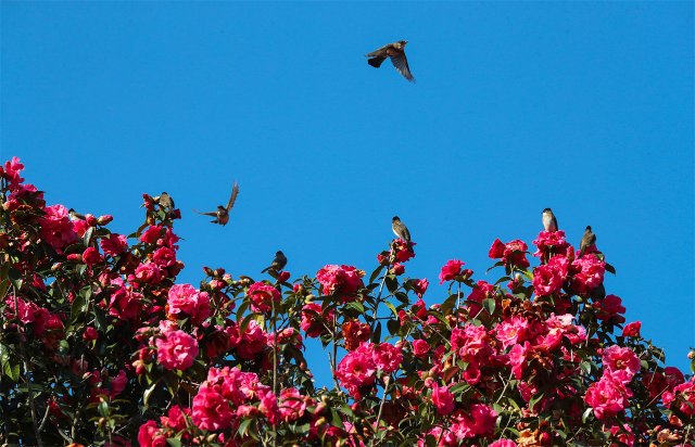 据茶花基地负责人介绍,腾冲茶花的花期长达半年,从每年的10月开始至次年4月底结束,这段时间基地都会免费对外开放。该基地每年都会吸引市民和各地游客前来,近两年来,每年到茶花基地赏花的游客都超过了13万人,今年春节以来,参观人数已达11万。“由于茶花蜜是鸟类的美食,花开时节会有很多鸟儿前来嬉戏觅食,因此这里也成为了观鸟摄影师拍摄的好去处,每年都吸引了大量摄影师不远千里前来。”该负责人表示。(春城晚报-开屏新闻记者 崔敏 文 通讯员 刘正凡 摄)