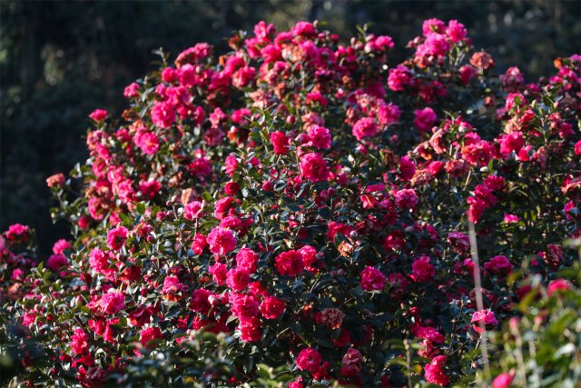 据了解,占地110亩的腾冲茶花基地建立于1982年,经过40多年的发展,目前,该基地共种植云南山茶花150多个品种、1万余株,其中大树的就有5000多株,是云南山茶的种质资源库。