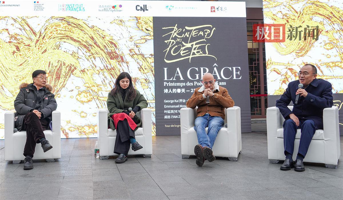 6日下午,在黄鹤楼下,来自中国的诗人阎志、叶延滨,法国诗人艾曼纽埃尔·默兹(Emmanuel MOSES)分别诵读自己的诗作,并在法国文学大咖杜青钢教授的主持下,展开了《从灵感到创作》的文学主题讨论,更有法国歌手乔治·卡(George KA)带来诗喃音乐演出作为压轴。