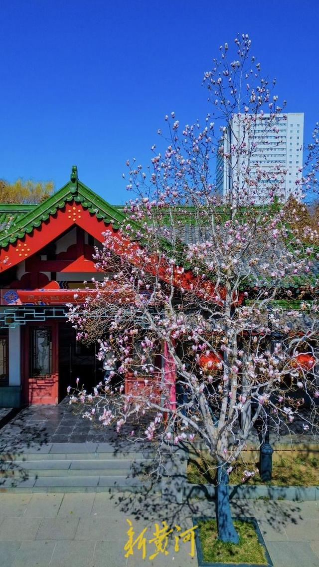 3月8日,摄影大V周博文老师发来一组图片:济南趵突泉北门,泉水地质展览馆这边的玉兰花开了!预计下周进入最佳观赏期。