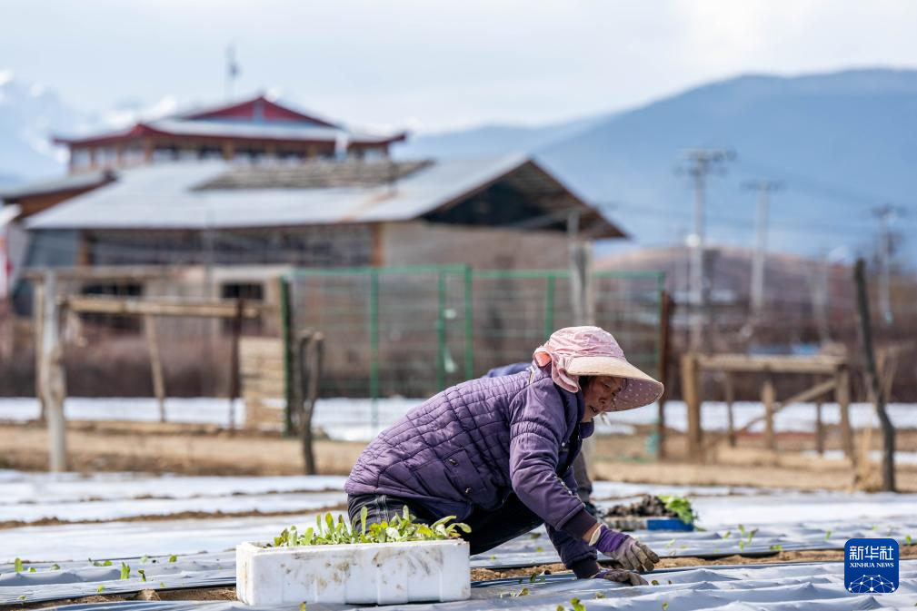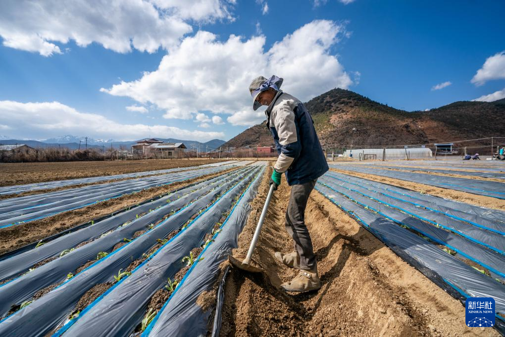 随着气温不断回升,云南省迪庆藏族自治州香格里拉市进入春耕阶段,田间一派农忙景象。