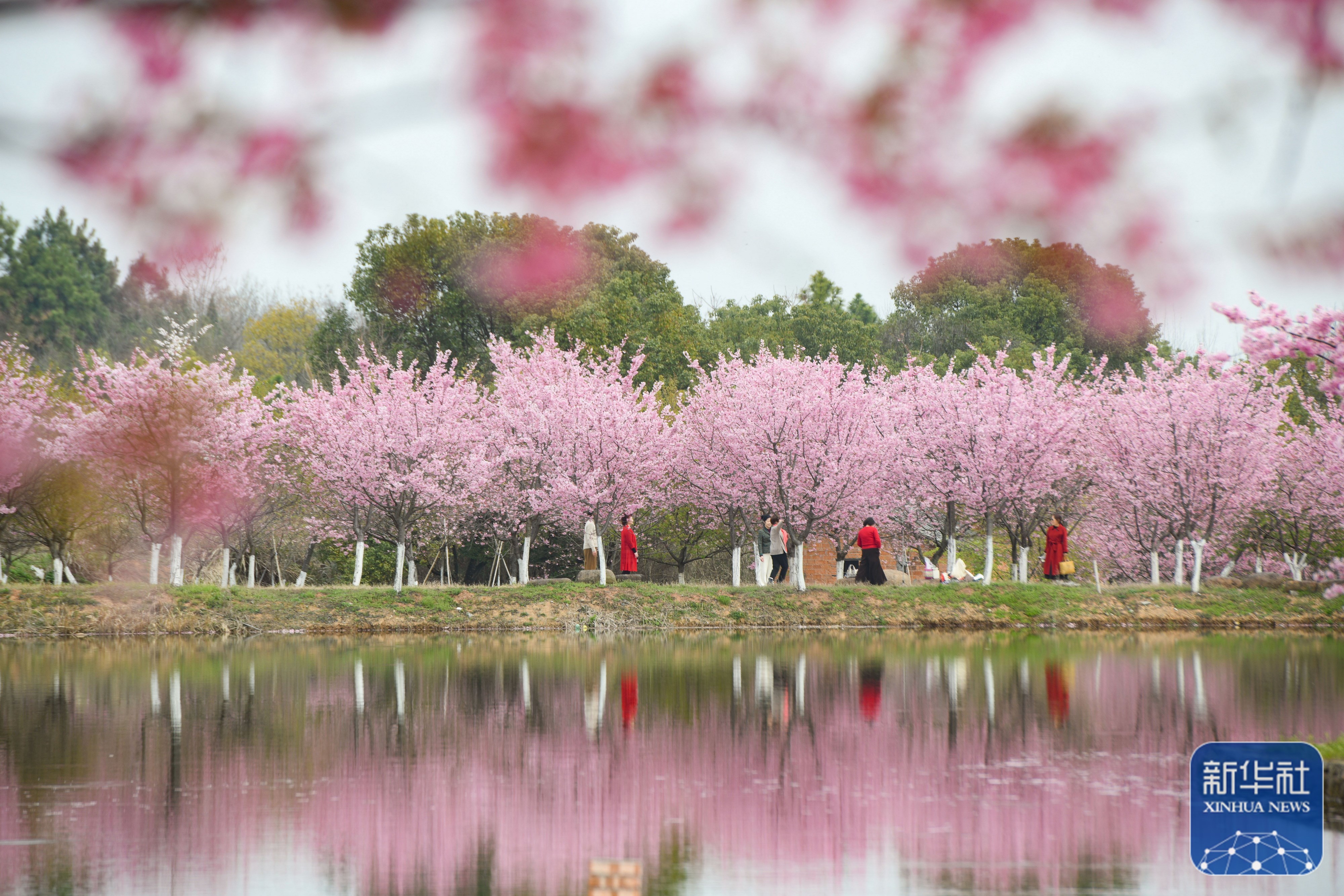 ↑3月13日,游人在浙江省兰溪市诸葛镇“智慧谜宫”樱花园游玩。新华社发(时宽兵摄)