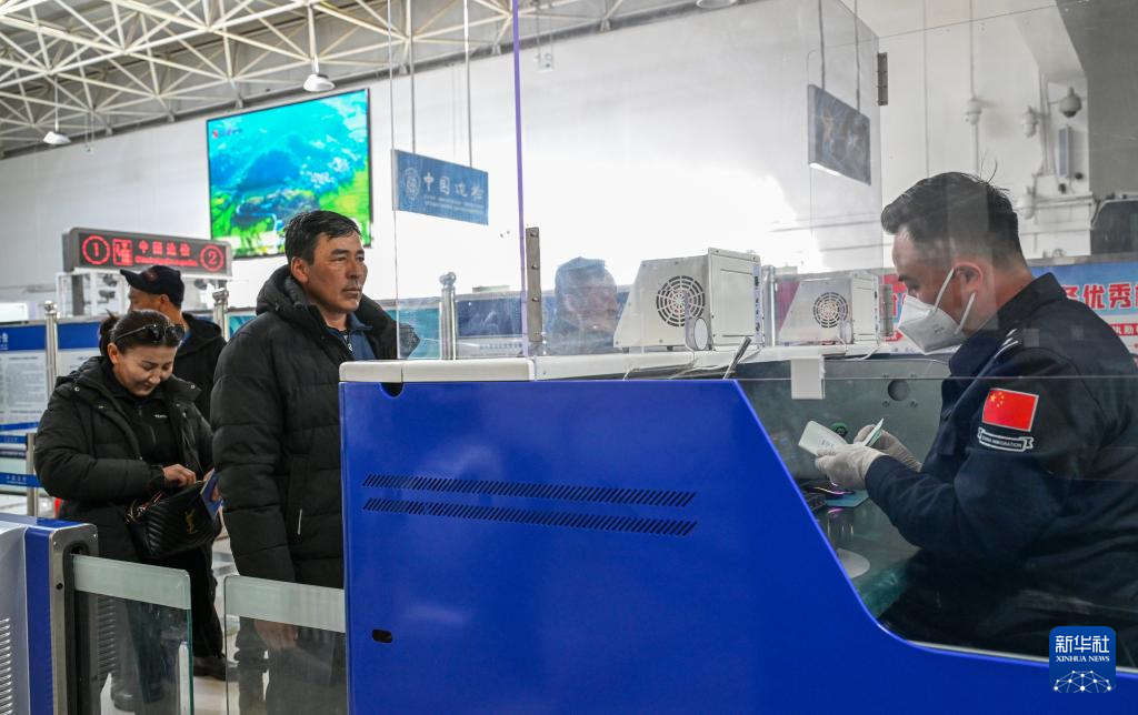 3月13日,在新疆塔克什肯口岸,民警核验旅客证件。