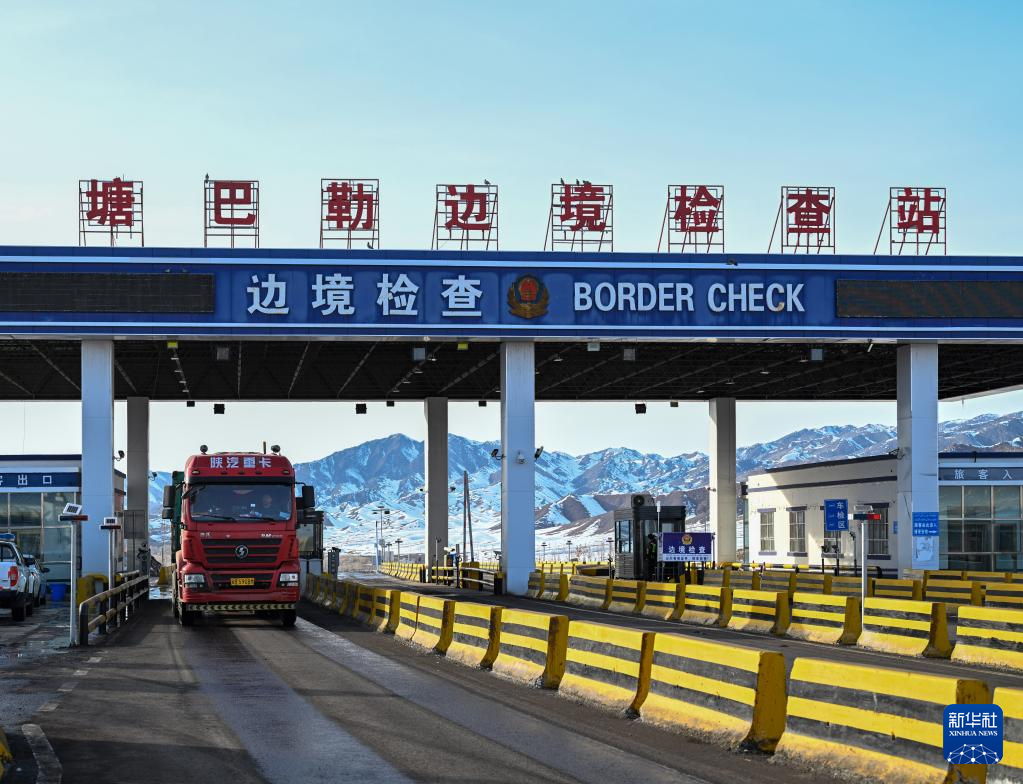 3月13日,车辆通过新疆塔克什肯口岸塘巴勒边境检查站。