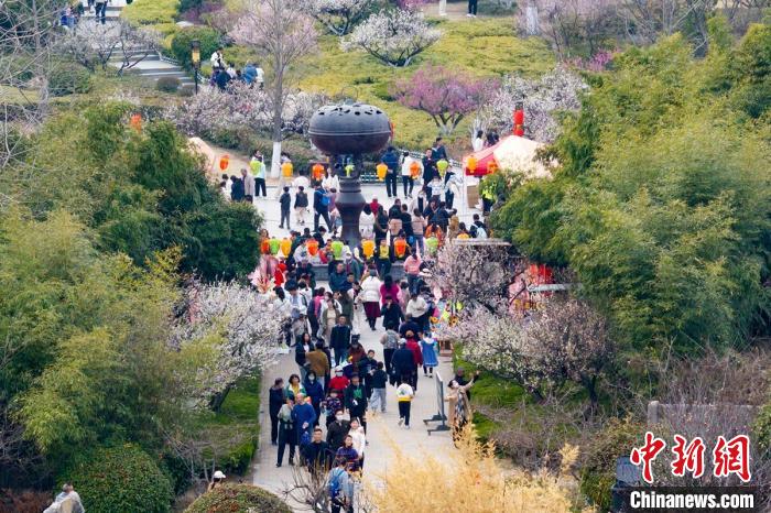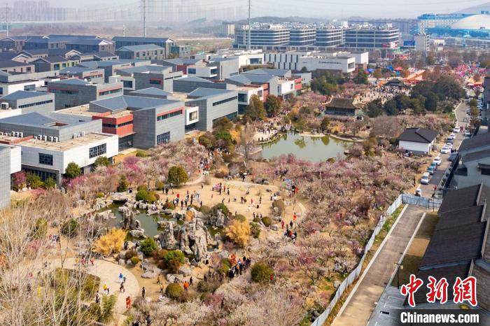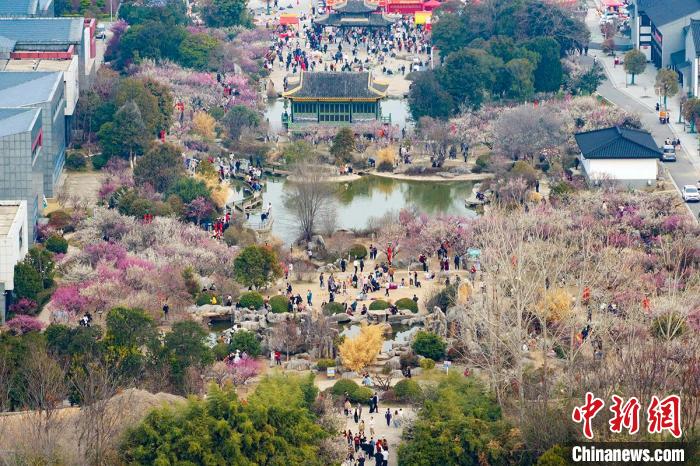 3月16日,航拍江苏徐州龟山探梅园,万紫千红春满堂。该梅园内种植了红梅、绿梅、乌梅、蜡梅、黑梅等五千余株梅树,搭配古戏台、雀楼以及曲桥等,是一处休闲生态并充满人文气息的赏梅胜地。