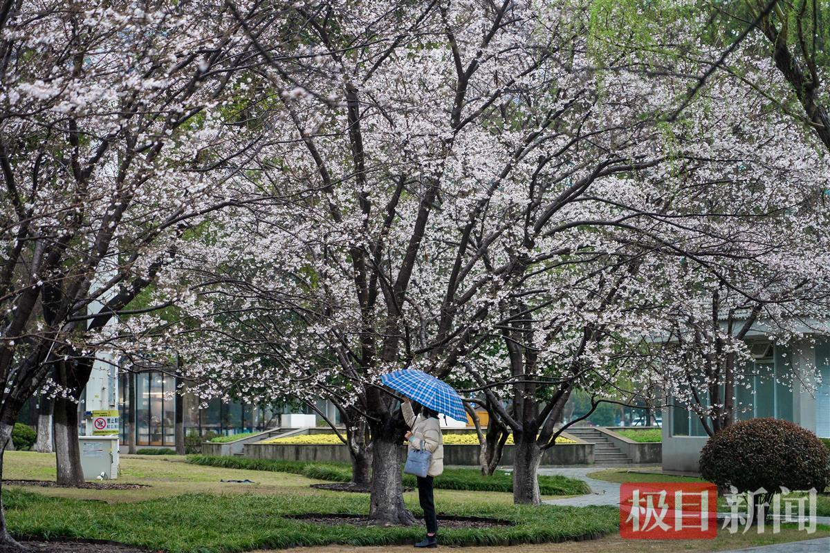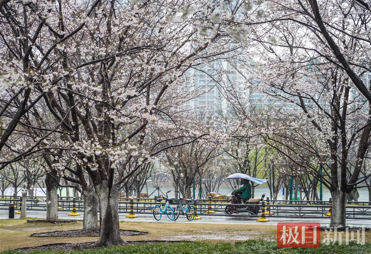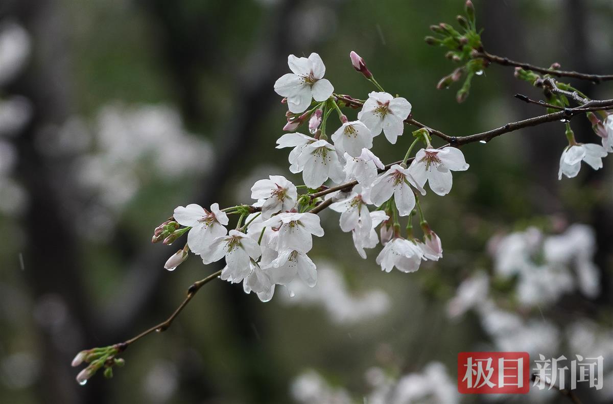 3月18日,春雨如丝洒落,将西北湖畔的樱花林染成了一片朦胧的粉色。雨水滴落在花瓣上,汇聚成晶莹的水珠,晶莹剔透。据悉,西北湖绿化广场共栽种樱花1000余株,是武汉十大赏樱点之一,预计在一周后将会进入满树繁花如霞似锦的盛花期。