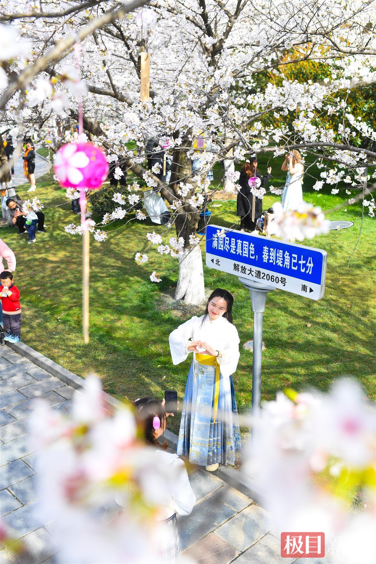 作为“武汉十大赏樱点”之一,该公园内共有樱花树1370余株22种,赏樱时长可贯穿整个三月和四月,20多公顷的公园里,步步见樱处处轻云。