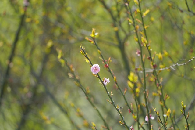 春日暖阳照耀,气温迅速回升。苏城大地柳条鲜嫩,在春风下飞舞,桃枝叶开始灿烂,迸发出春天的力量。