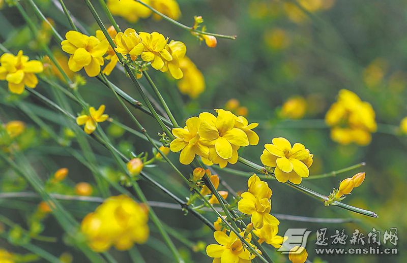 恩施州文化中心迎春花盛开。