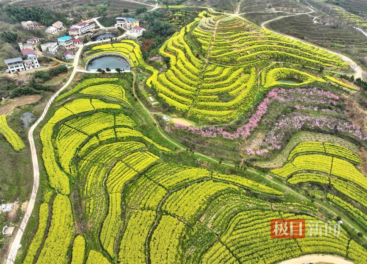阳春三月,湖北省黄冈市浠水县巴河镇城山村种植在梯田里的千亩油菜花正肆意绽放。俯瞰镜头下,花海沿着山坡层层铺展,构成了一幅色彩缤纷的画卷。