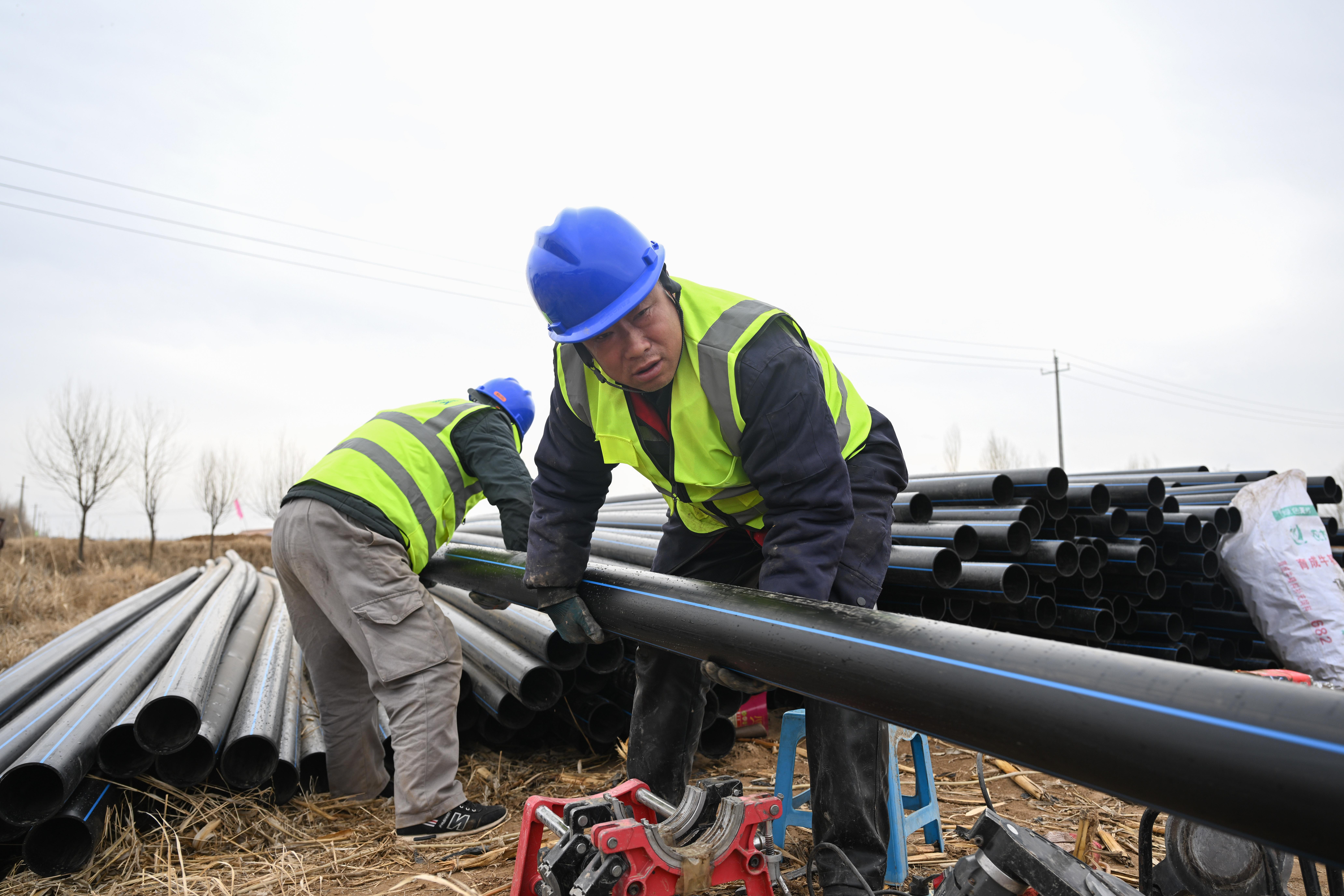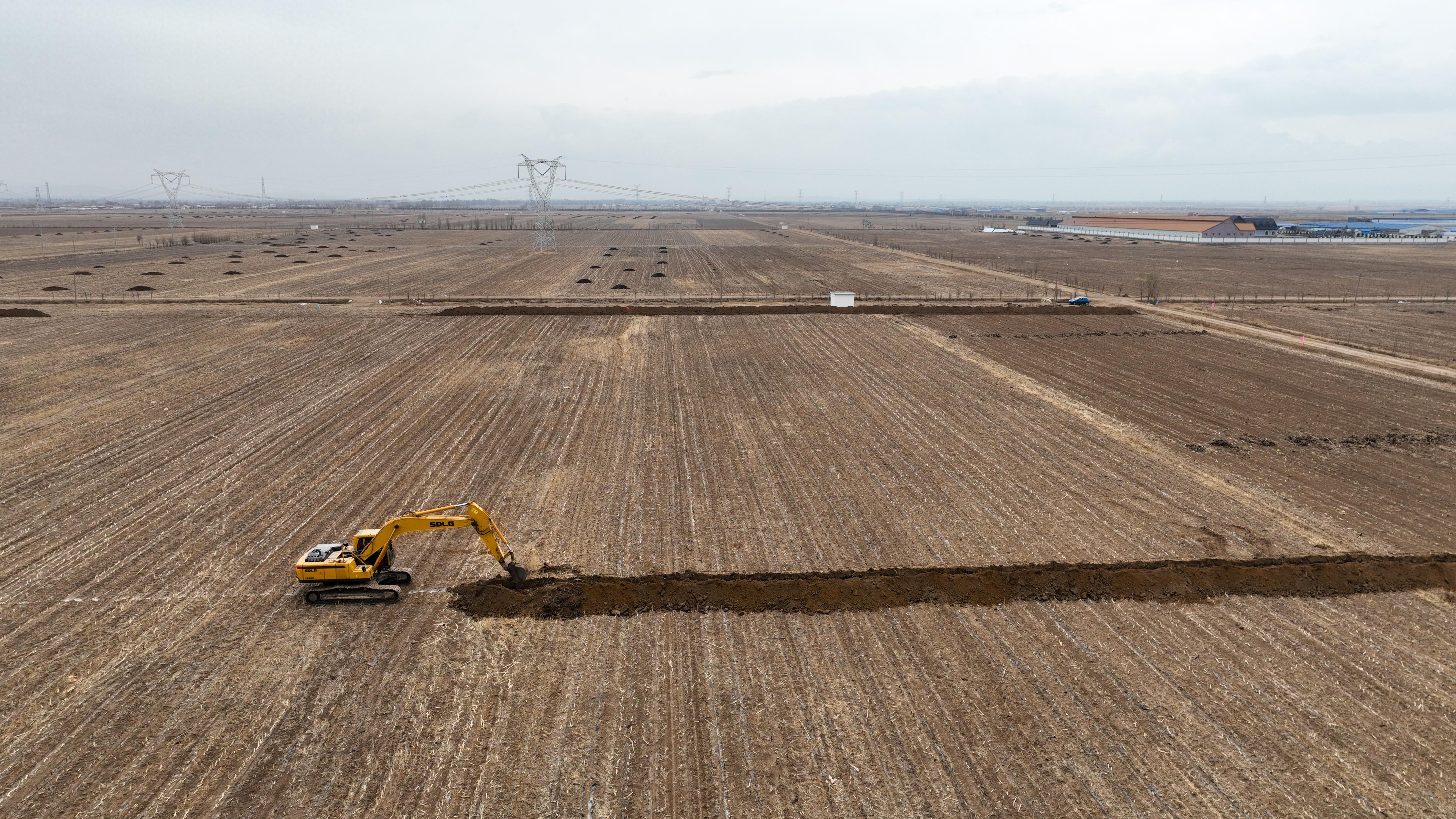 3月27日,工人在内蒙古呼和浩特市赛罕区金河镇碾格图村一处高标准农田建设现场施工。 新华社记者 贝赫 摄