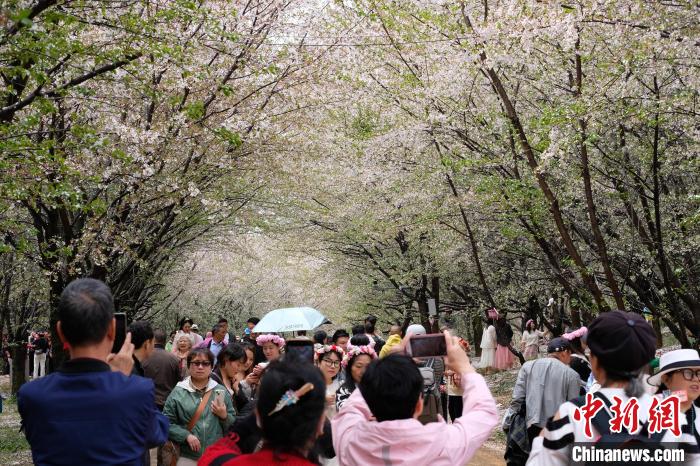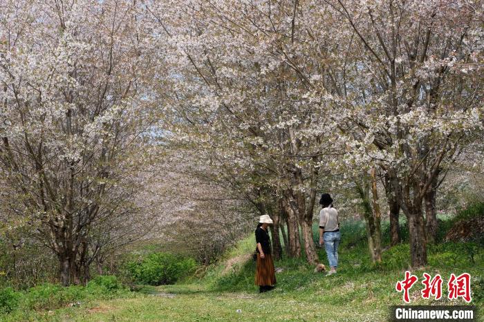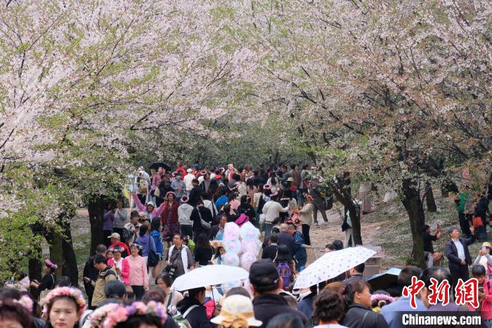 游客在贵州贵安新区樱花园内游览。 中新网 记者 石小杰 摄