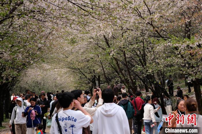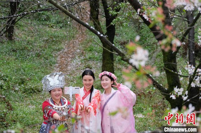 游客在贵州贵安新区樱花园内拍照。 中新网 记者 石小杰 摄