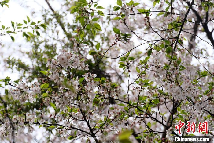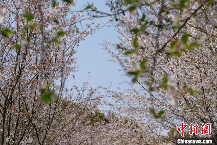 贵州贵安新区樱花园内绽放的樱花。 中新网 记者 石小杰 摄