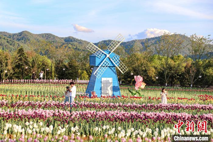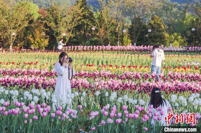 图为仙凤三宝园的绚丽花海吸引游人赏花拍照“打卡”。刘力鑫 摄