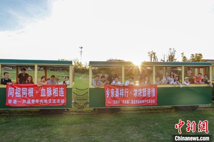 图为“同祖同根·萍城有爱”香港青年内地交流团和“同携手·共发展”香港考察交流团走进仙凤三宝园乘坐观光小火车参观。刘力鑫 摄