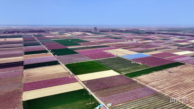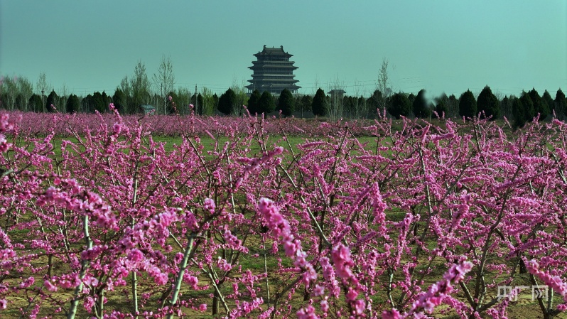 穿过桃花林遥望鹳雀楼,感受自然与历史的交融之美(央广网发陈春明摄)