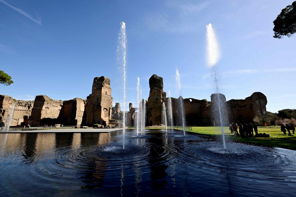 这是4月4日在意大利罗马卡拉卡拉浴场拍摄的新搭建的人工水景。新华社/法新