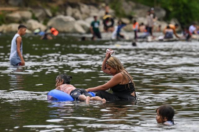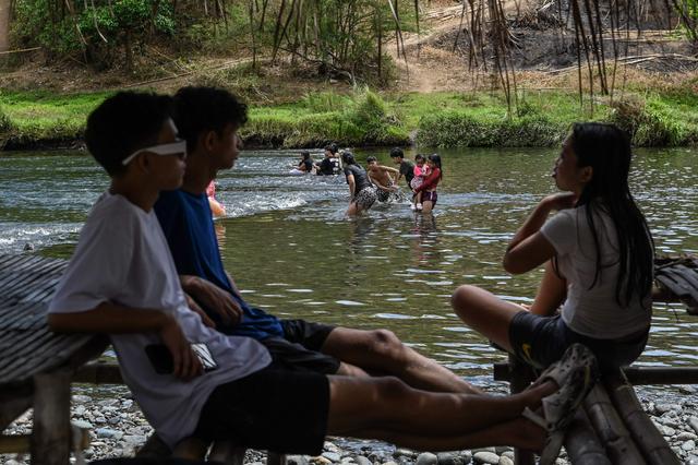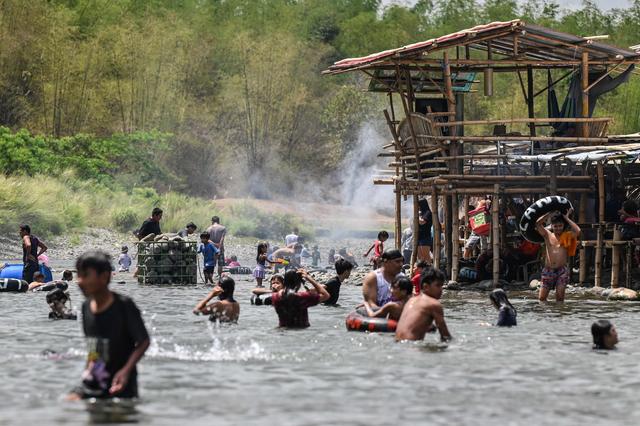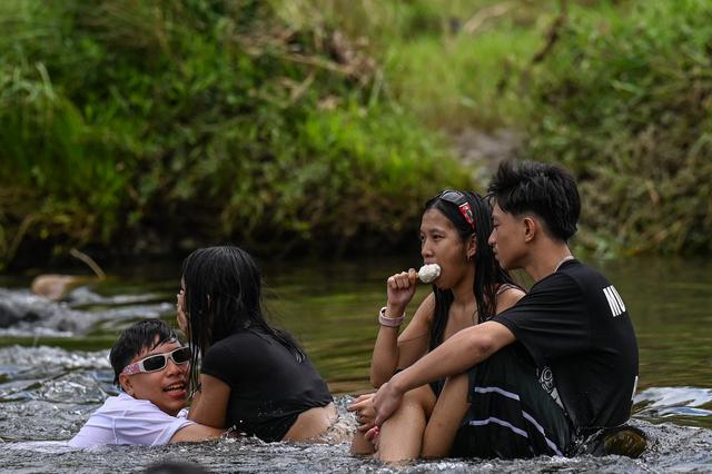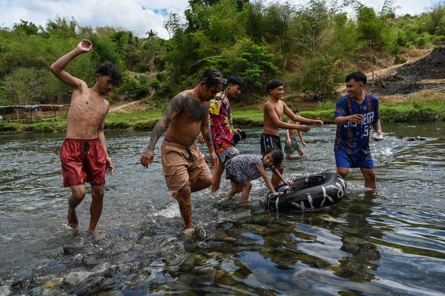 4月6日,在菲律宾布拉干的诺萨加赖河,人们来到河边戏水。新华社/法新