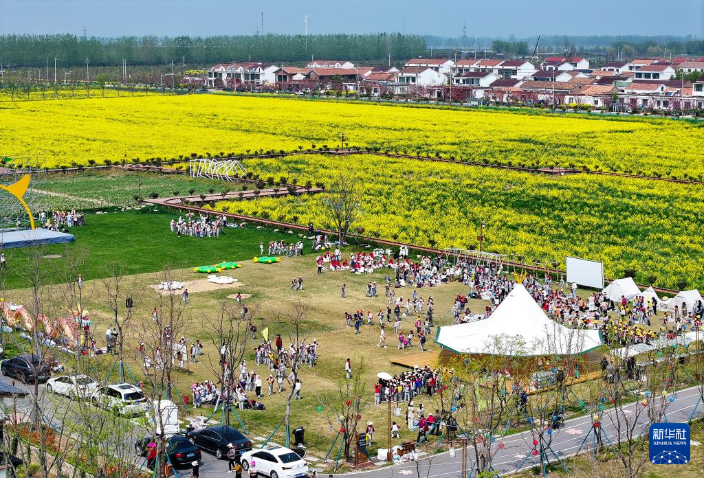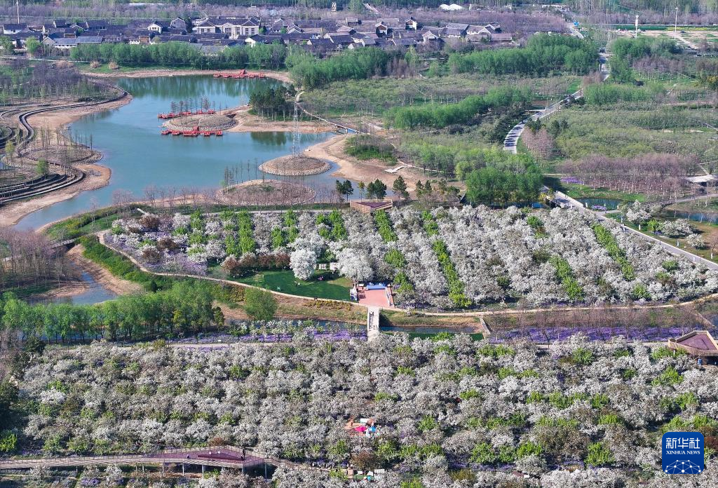 4月9日拍摄的宿迁市宿城区蔡集镇牛角村欢乐田园度假区景色(无人机照片)。