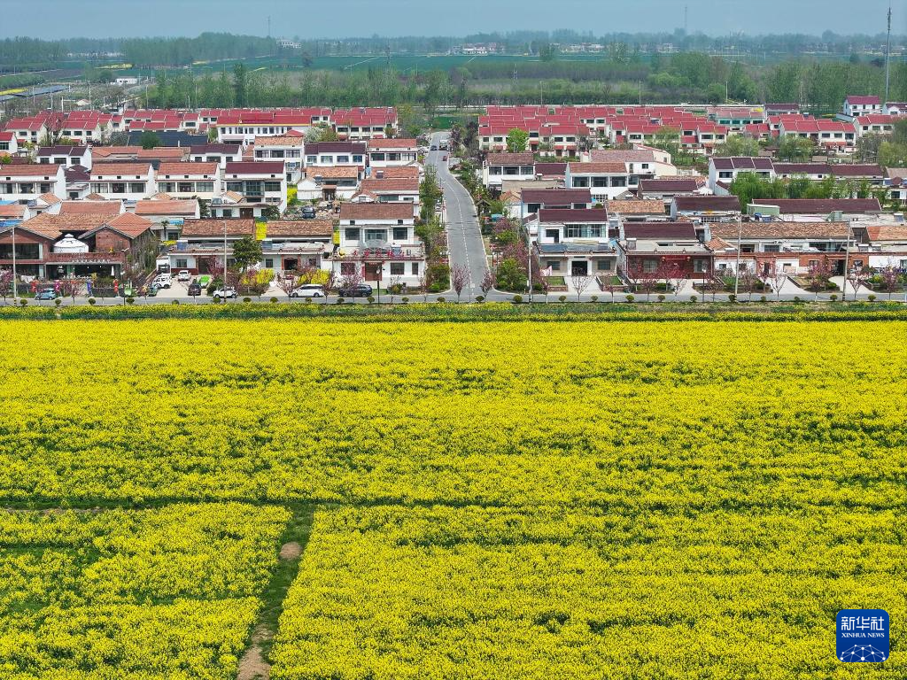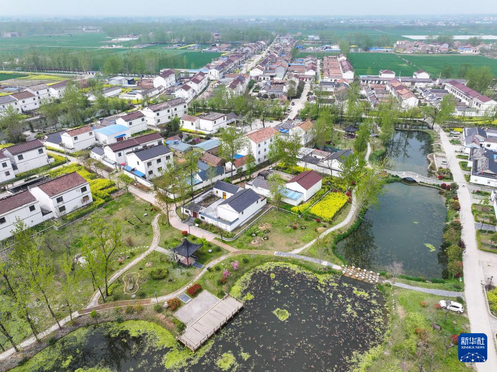 4月9日拍摄的宿迁市宿城区蔡集镇牛角淹新型农村社区景色(无人机照片)。