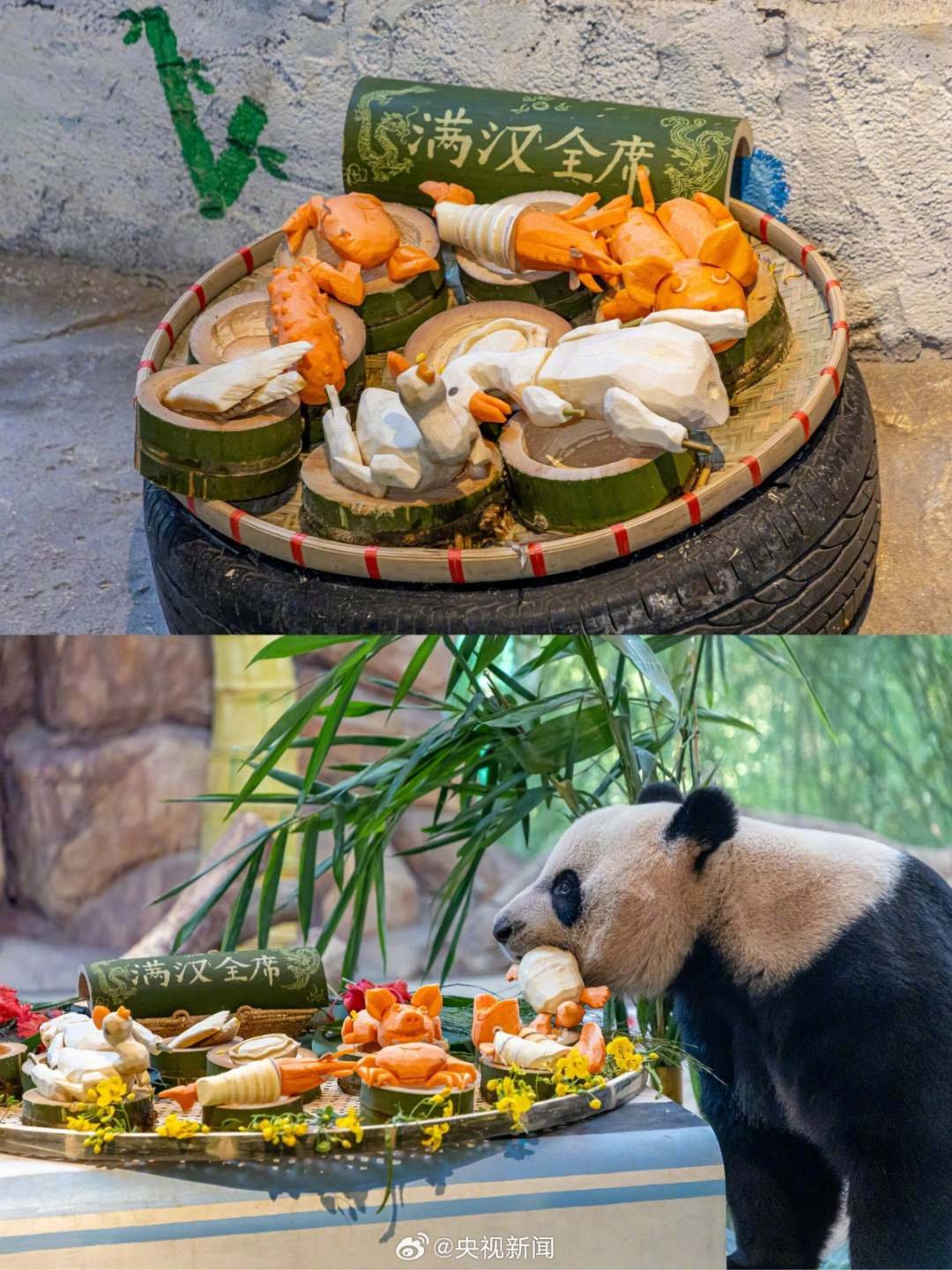 特色凉茶喝了,“大闸蟹”“龙虾”吃了,“白斩鸡”嘎嘎炫,下午茶就简单来桌“满汉全席”吧……熊熊我啊,好惬意!