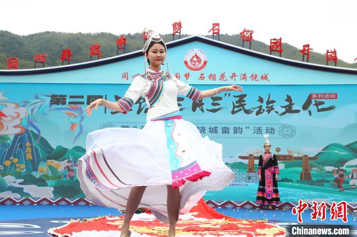 图为极具畲族民俗风情的畲族服饰秀表演。刘占昆摄