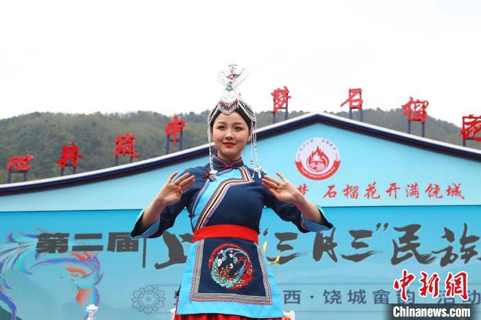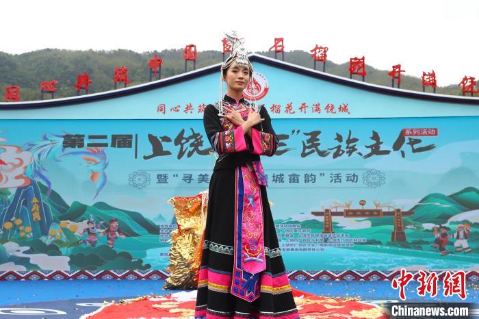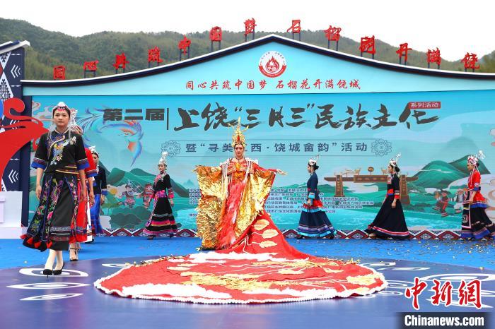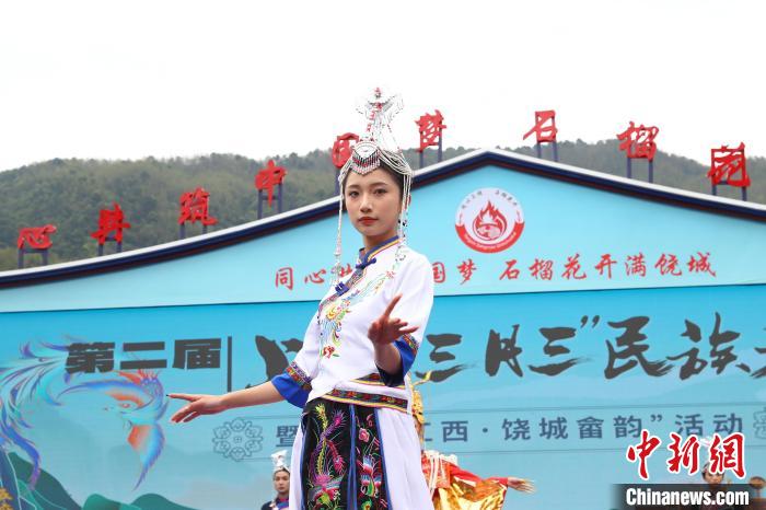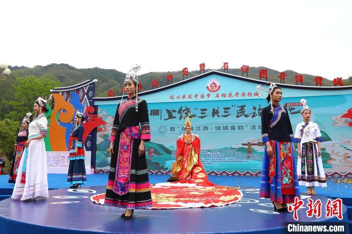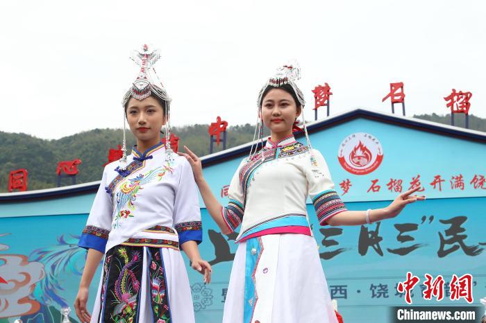 4月11日,农历三月初三,第二届上饶“三月三”民族文化系列活动暨“寻美江西·饶城畲韵”活动在江西省上饶市广信区五府山镇船坑畲族村启动。活动现场,极具畲族民俗风情的畲族服饰秀表演《凤舞畲寨》,展示了畲族不同风格的服饰,其中有一件历时一个多月手工缝制而成的“凤凰服”格外出圈,吸引了众多游客和村民观赏。