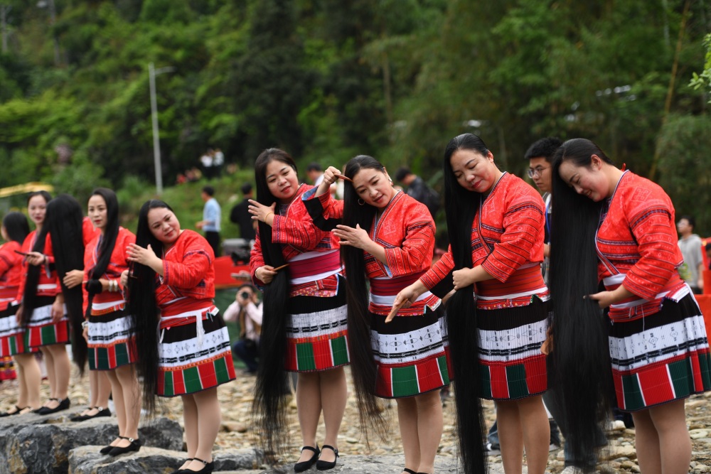 当日是农历三月初三,广西桂林市龙胜各族自治县黄洛瑶寨举行一年一度的红瑶“长发节”。红瑶“长发节”是黄洛瑶寨欢庆“三月三”的传统项目。