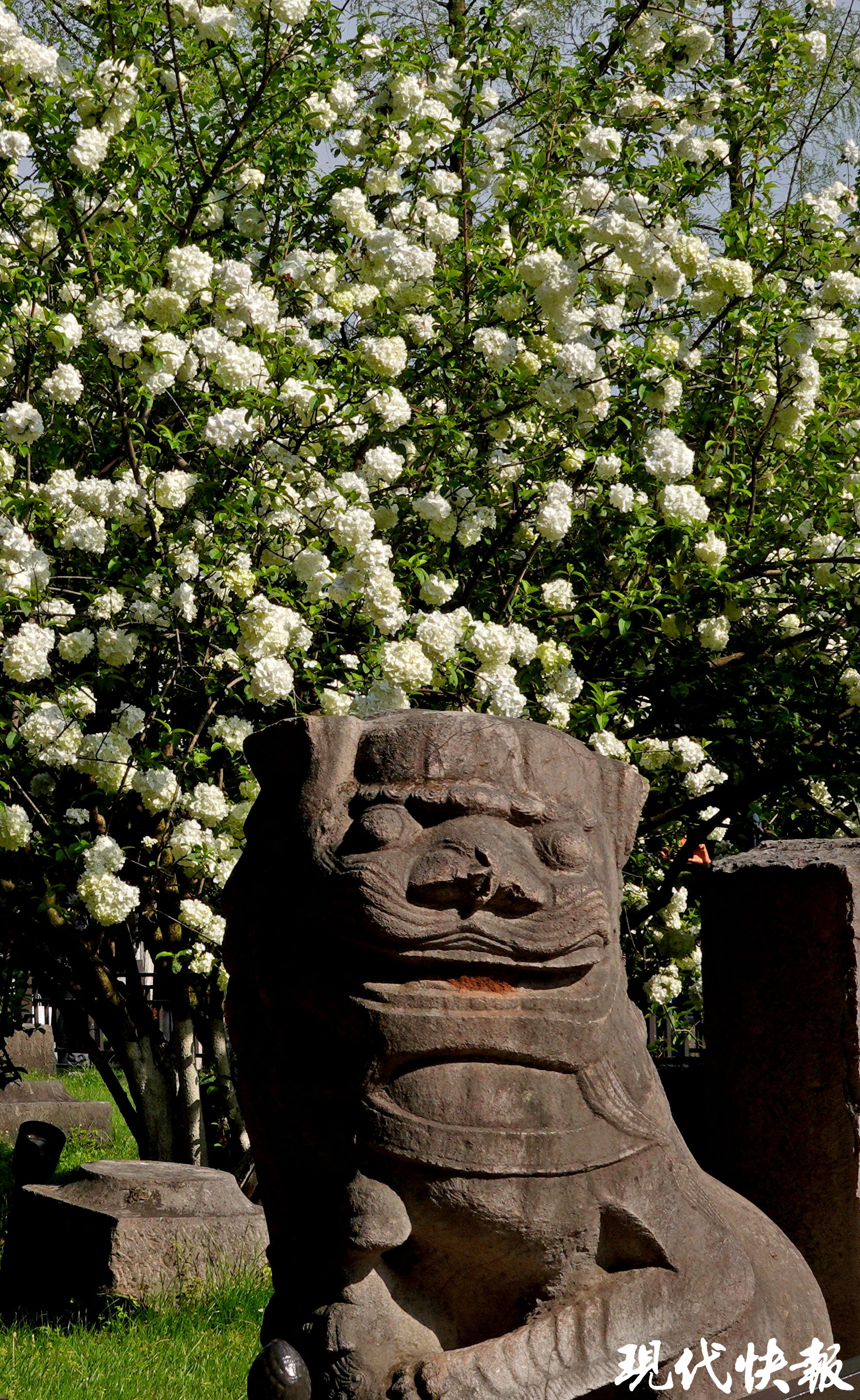 城墙、石刻、绣球花,在午朝门公园,绣球花也染上了历史沧桑感。