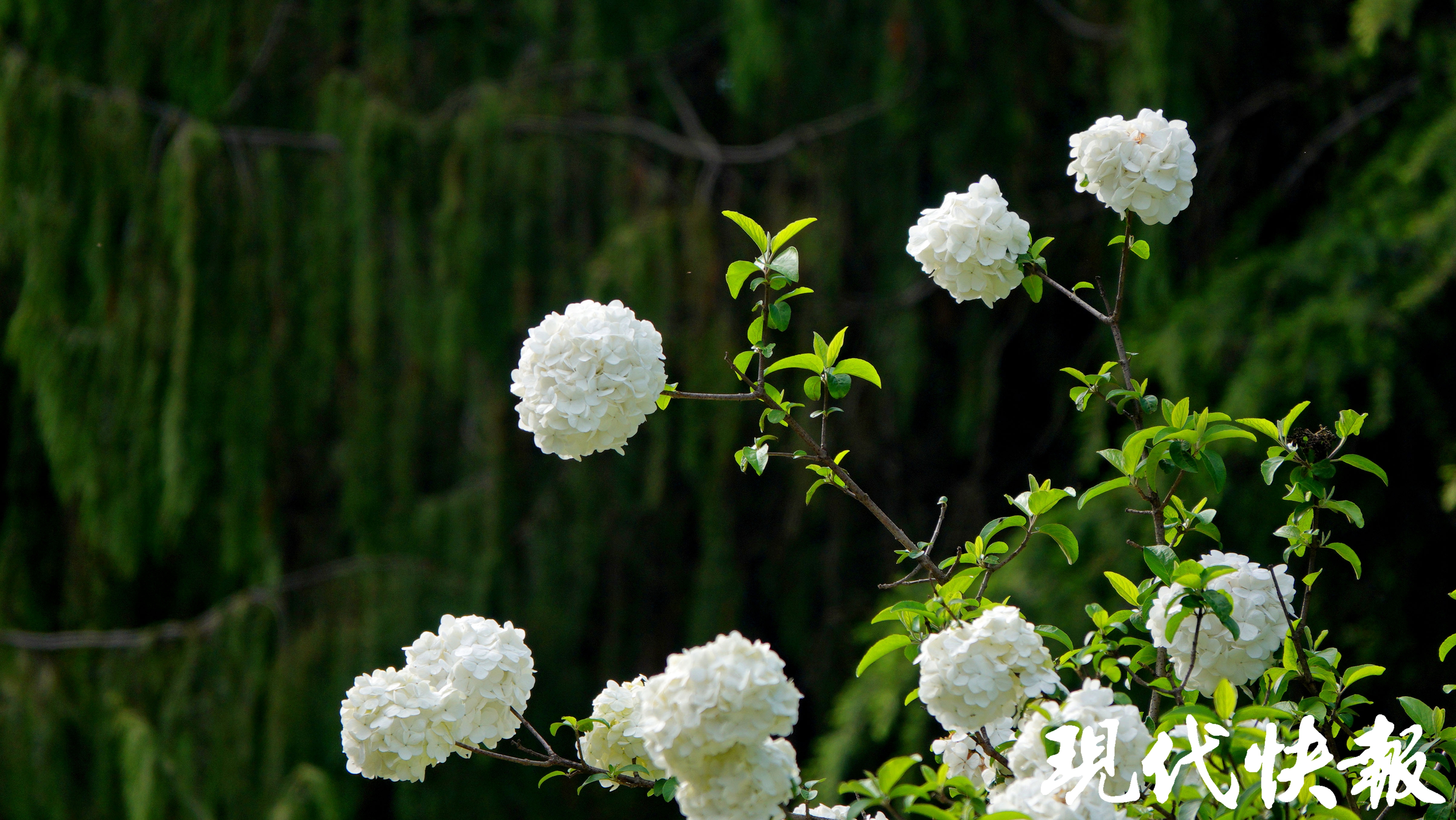现代快报讯(记者 卢河燕/文 赵杰/摄)春风拂过,南京午朝门公园,木绣球随风摇曳,一丛丛、一簇簇,饱满而又热烈地绽放。