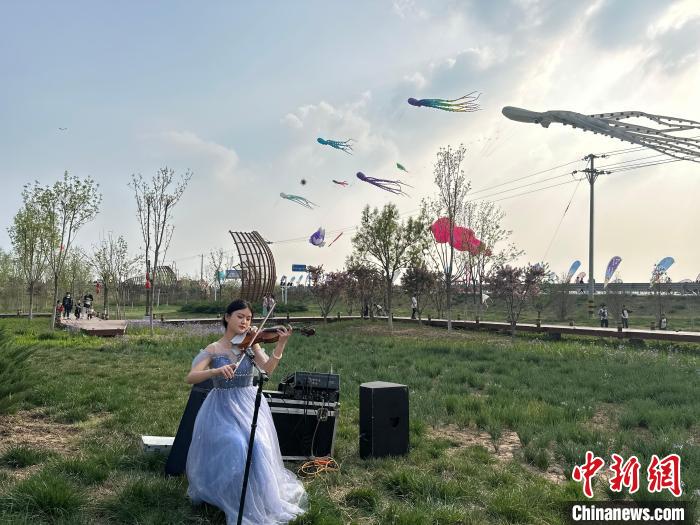 4月13日,一音乐爱好者在活动现场演奏小提琴。范高雅 摄