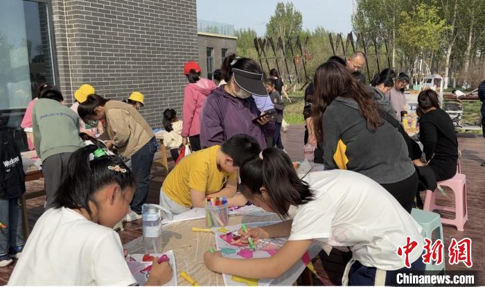 4月13日,游客们在活动现场制作风筝并涂色。范高雅 摄