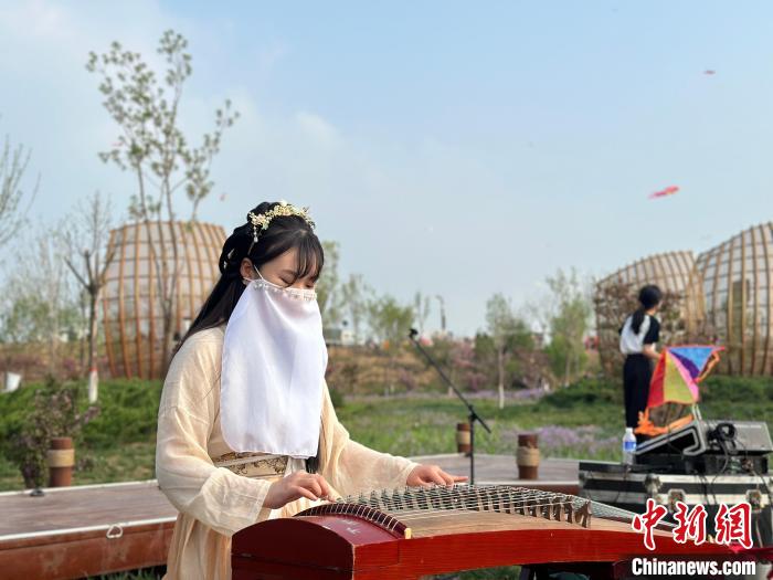 4月13日,一古筝爱好者在活动现场演奏古筝。范高雅 摄