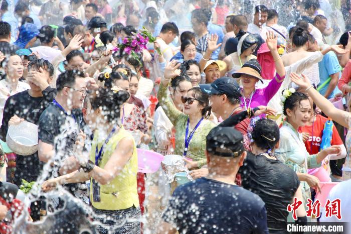 中新网普洱4月13日电(罗婕)13日,“千景之谷·花朝水悦”景谷2024年采花泼水节在云南省普洱市景谷傣族彝族自治县启幕。现场上万民众、游客参加赶摆,泼水互送祝福、欢庆节日。